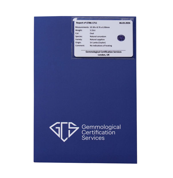 Note: This ring comes fully certified with a complete report for the sapphire from Gemmological Certification Services (GCS) in London. The report states that the sapphire is of natural Ceylon origin and shows no indication of heat treatment.